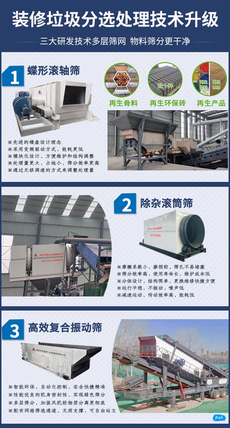 當前,我國的建筑裝修垃圾年產(chǎn)量是十多億噸,而在大多地方,建筑裝修垃圾還是采用傳統的填埋處理,近幾年*也提出大力發(fā)展循環(huán)經(jīng)濟,低碳環(huán)保,建筑裝修垃圾資源再利用必將是一個(gè)趨勢。中意為客戶(hù)提供專(zhuān)業(yè)的建筑垃圾處理、裝修垃圾分選等設備,歡迎來(lái)廠(chǎng)參觀(guān)考察!