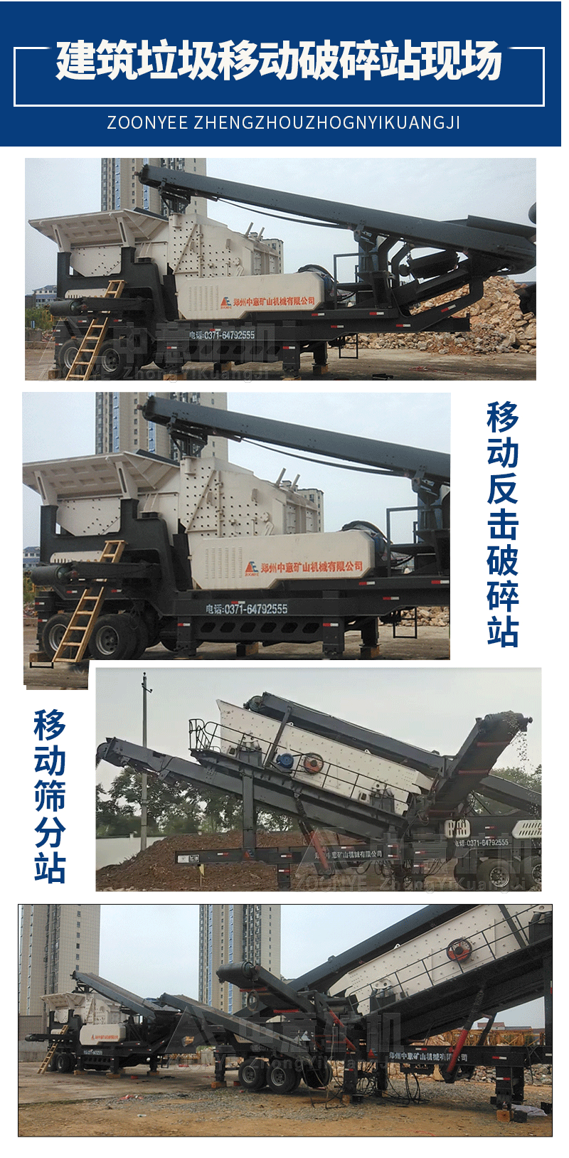 鄭州中意礦機研制的移動(dòng)式建筑垃圾處理設備分為破碎站和篩分站,相當于一個(gè)小型的移動(dòng)式加工廠(chǎng),主要由移動(dòng)車(chē)架、電纜、給料機、新型建筑垃圾專(zhuān)用破碎機、振動(dòng)篩、集中電控、液壓系統、工作臺、除鐵器、皮帶機等組成。該機移動(dòng)性強,可自由進(jìn)入拆遷現場(chǎng),減少了垃圾清運的費用和運輸過(guò)程中產(chǎn)生的環(huán)境污染。該機動(dòng)力強勁,加工出骨料粒型好,操作方便,只需三人就能完成整個(gè)生產(chǎn)任務(wù)。