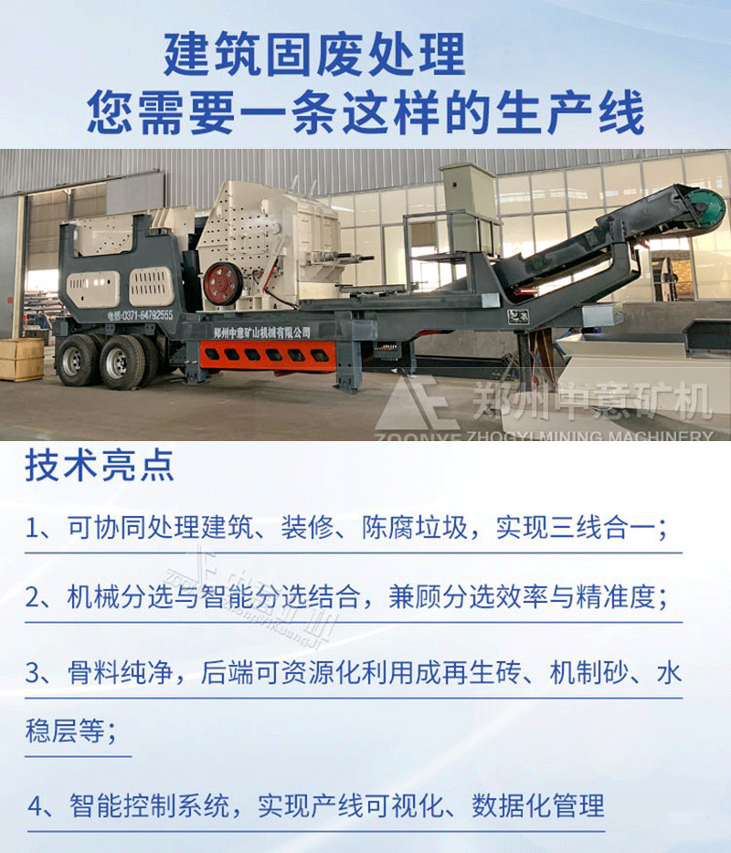 移動(dòng)破碎站因移動(dòng)靈活,機動(dòng)性強,節能環(huán)保,節省運輸費用等等優(yōu)勢深受客戶(hù)信賴(lài)和市場(chǎng)歡迎。從破碎程度上分,可以和粗碎設備,中碎設備,細碎設備搭配。實(shí)現建筑垃圾資源化、減量化、無(wú)害化的經(jīng)濟效益、社會(huì )效益、生態(tài)效益和低碳經(jīng)濟的目標。移動(dòng)破碎站快速轉移、即投入即使用,避免了固定式繁瑣的前期規劃和建設周期的投入,充分提升設備的利用率。建筑垃圾再生骨料處理過(guò)程中的輕物質(zhì)材料,工作效率高,分離精度好,有效提升建筑垃圾骨料再生質(zhì)量。